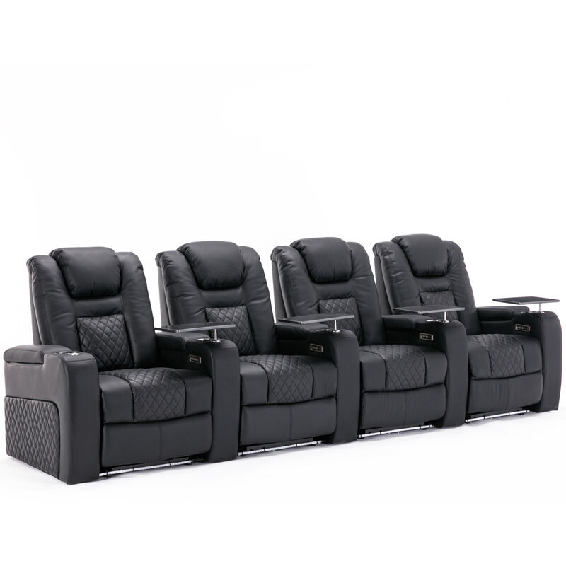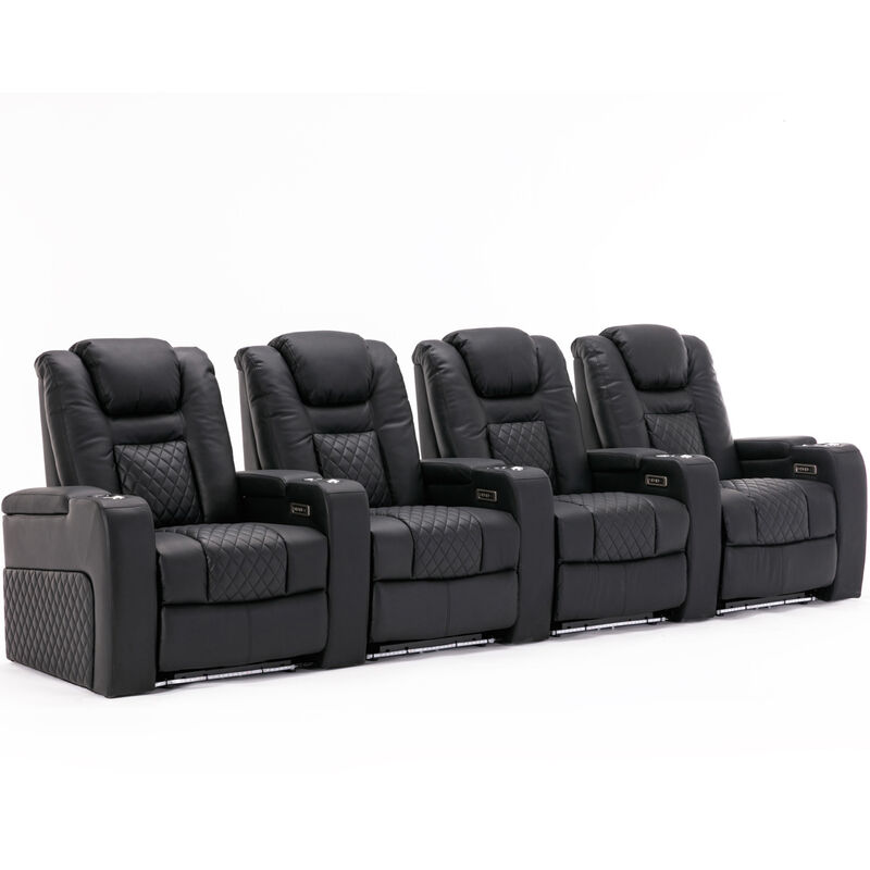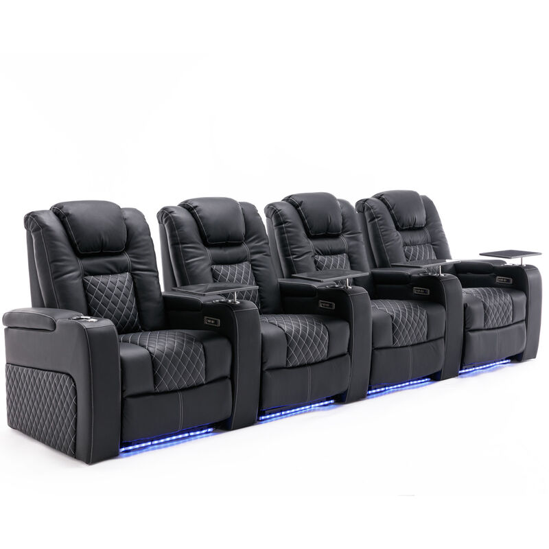 More4Homes Broadway 4 Seater Cinema Electric Recliner Chair USB Charging LED Base in Black Black