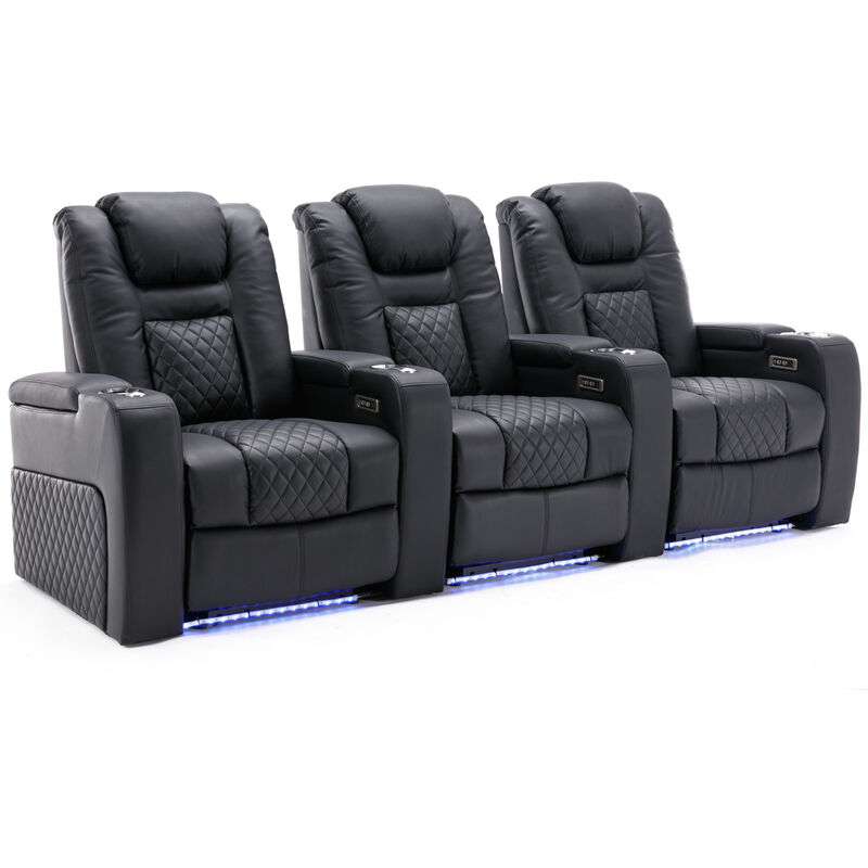 More4Homes Broadway 3 Seater Cinema Electric Recliner Chair USB Charging LED Base in Black Black
