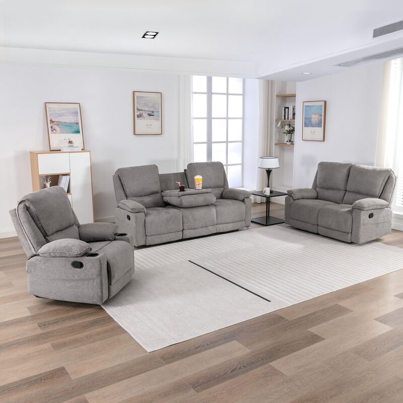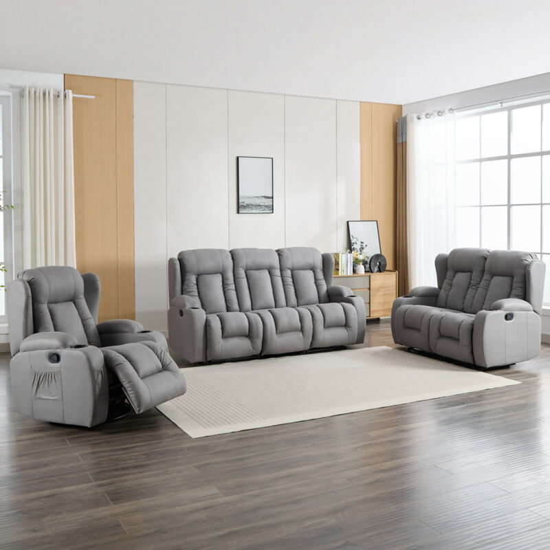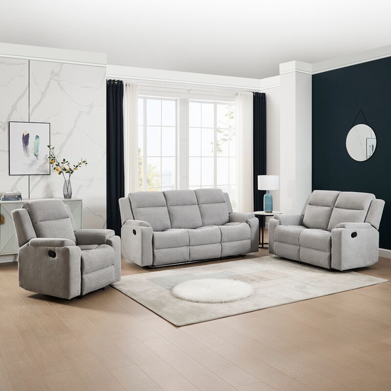 More4homes - sydney 1+2+3 seater fabric manual recliner sofa set grey - Grey