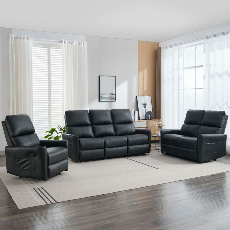 MORE4HOMES Madrid 1+2+3 Seater Manual Recliner Air Leather Sofa Set Black