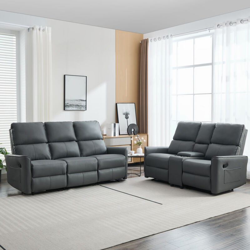 MORE4HOMES Madrid 2+3 Seater w Console Manual Recliner Air Leather Sofa Set Grey