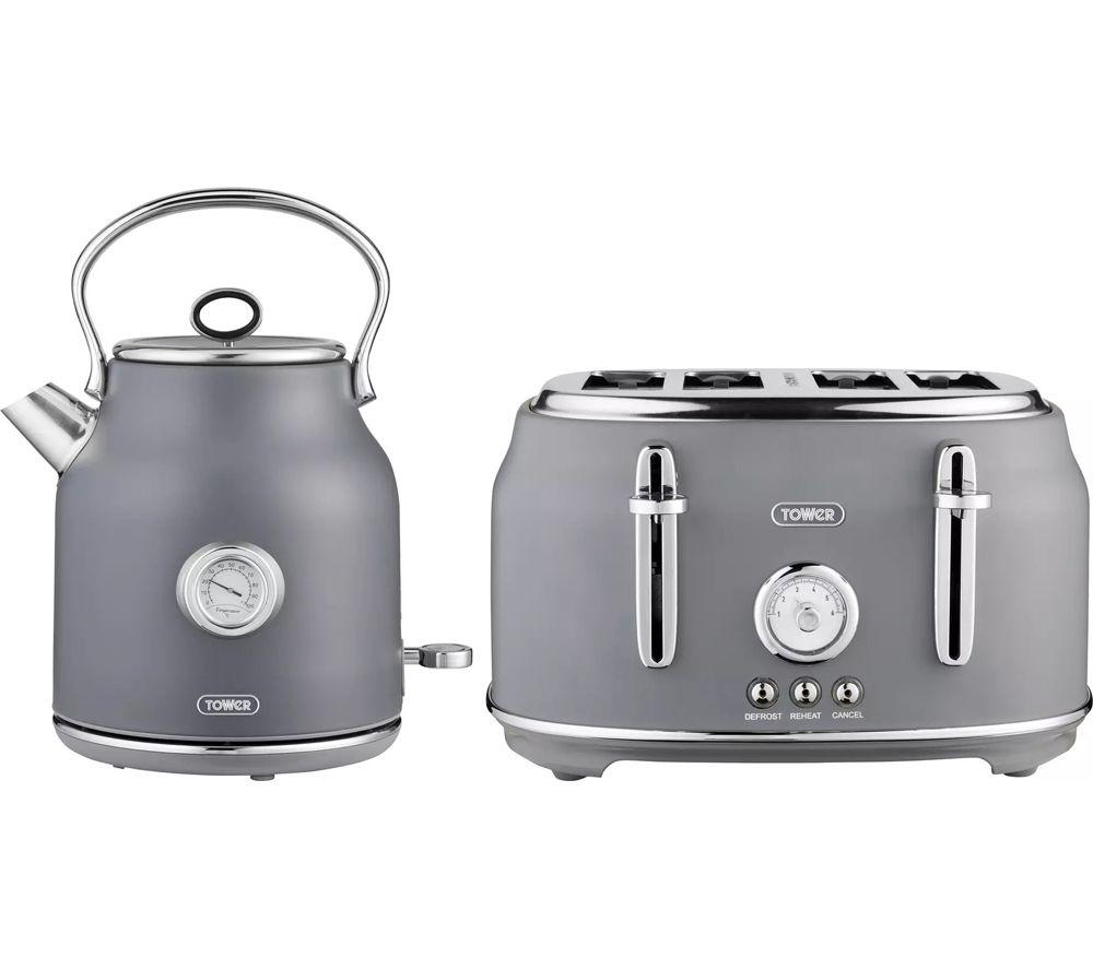 Tower Cavaletto 4-Slice Toaster and Kettle Bundle - Grey, Silver/Grey