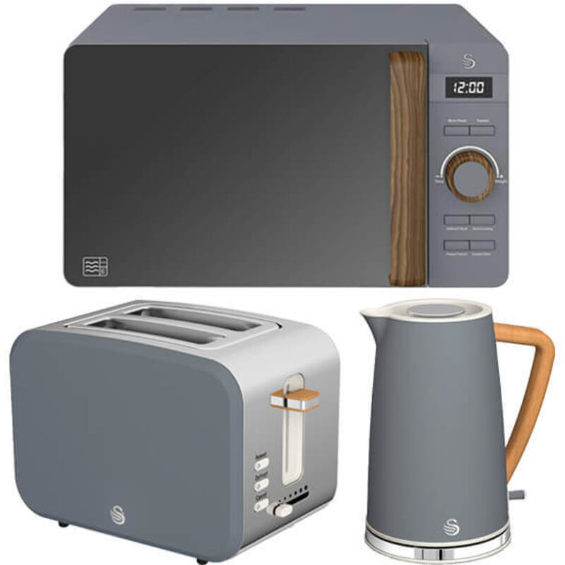 Swan - Nordic Slate Grey 1.7L Kettle, 2 Slice Toaster & 20L Digital Microwave Set