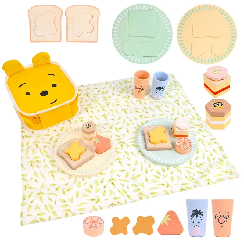 Disney Unisex Winnie the Pooh Wooden Picnic Set for Kids – Pretend Play Food Toy Multicolor One Size female