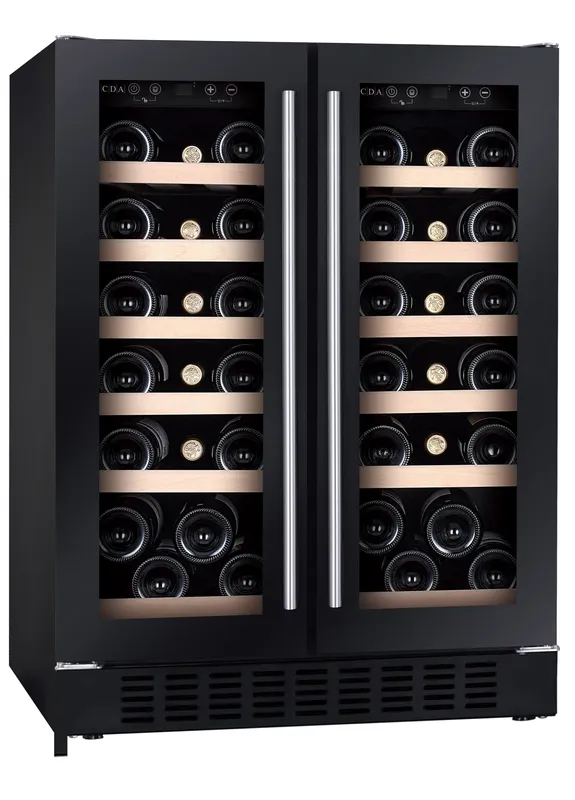 CDA CFWC624BL Black Double Door Freestanding Dual Zone Wine Cooler